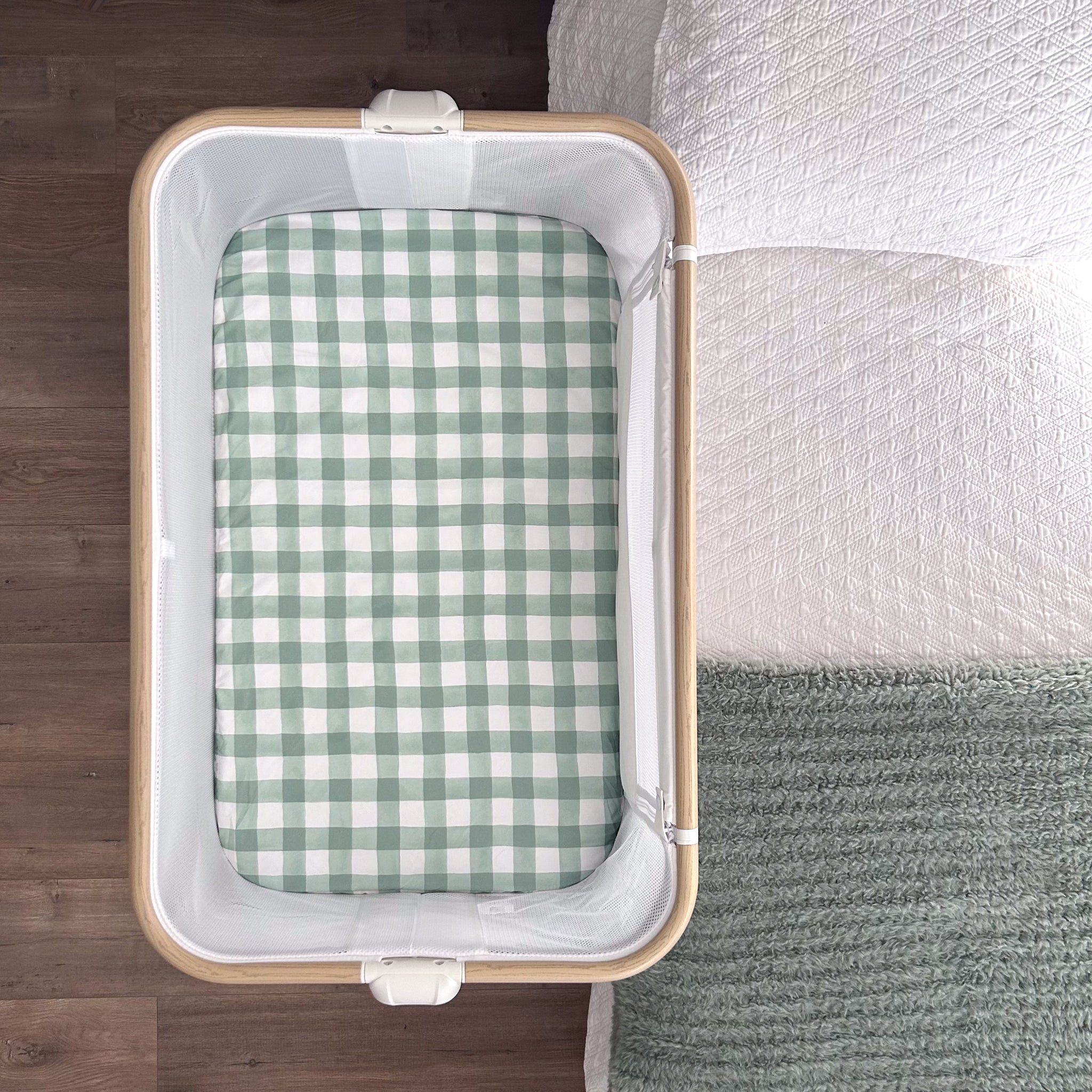 Love the gingham style pattern. We got 3 co sleeper sheets, so we have plenty on hand if bub has any accident. Was super impressed with the fit, and the sheets are such good quality.